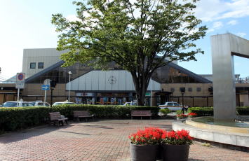 11:54 新前橋駅着、島式ホーム2本の橋上駅、82.1KPあり、隣接して新前橋電車区があり、構内が狭く所狭しと電車が留置され、鉄道ファンには有難い。駅前ロータリーは落着いた雰囲気を持ち、一隅に県の社会福祉総合会館があるが、新しく豪華な造りだ。